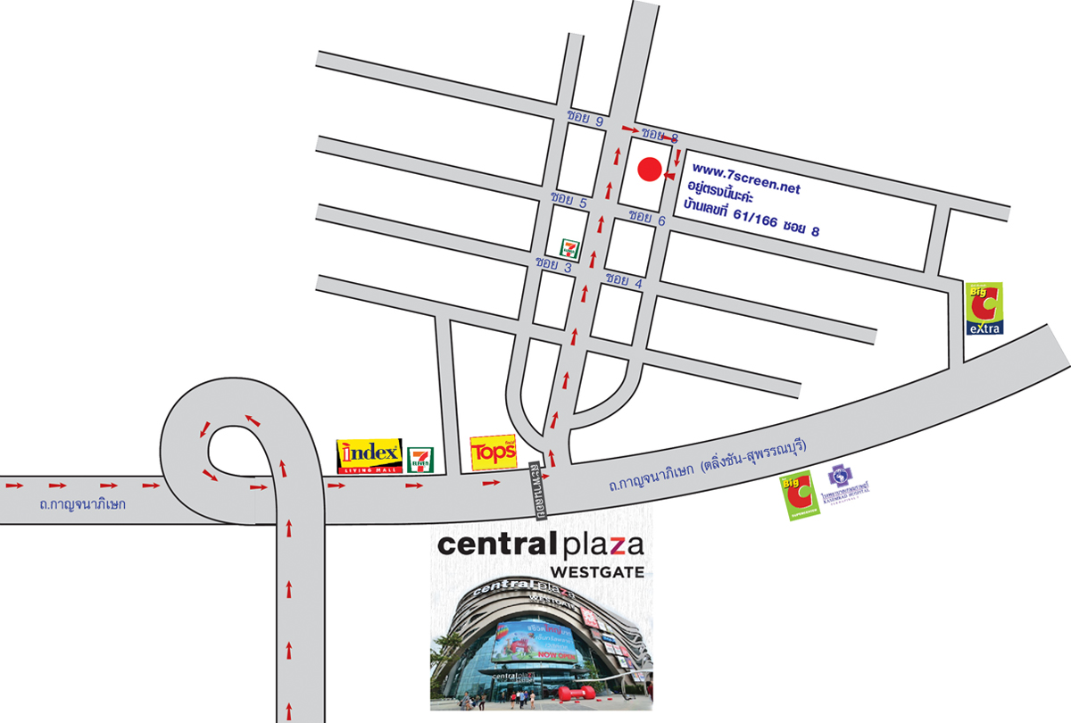 วิ่งถนนสายกาญจนาภิเษก เลี้ยวซ้ายตรงสะพานลอย หน้าเซ็ลทรัลพลาซ่าเวสต์เกต